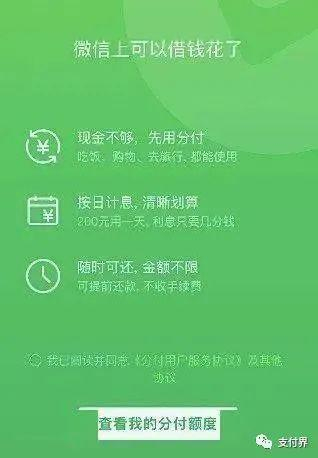 微信官方曾对此表示:“分付”是一款全新的‘类分期’消费贷产品,开通后可在支付时选择使用,主打按日计息、随借随还。也是微信支付为用户提供的一种新的支付选择,更方便,更省钱。