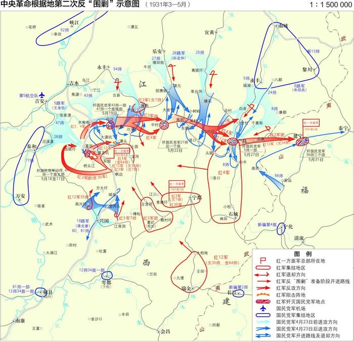 中央革命根据地第二次反“围剿”示意图
