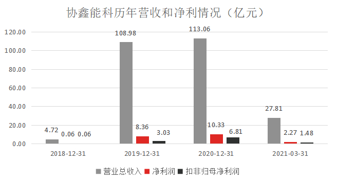 从营收和净利润来看,协鑫能科2020年实现营业收入113.06亿元,同比增长3.74%,归母净利润8.02亿元,同比增长44.80%,归母扣非净利润6.81亿元。