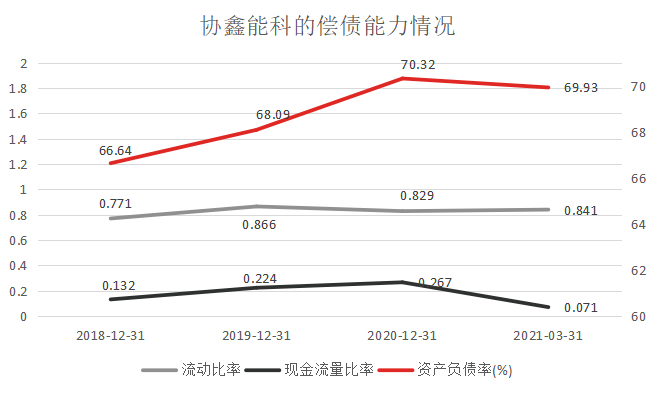 从偿债能力的指标来看,也是“祖传”的高杠杆率,低偿债能力,且资产负债率还在不断地上升。