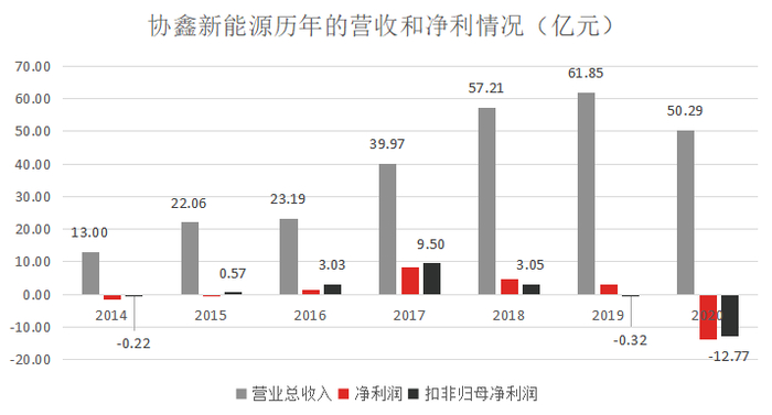 上市以来,截止2019年,公司累计创造的利润为15.77亿元。然而2020年的大亏,导致协鑫新能源累计创造的净利润下降为2.09亿元,只要协鑫新能源继续亏损1个季度,这点利润就被完全抹掉。