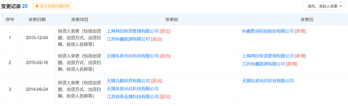 随后在2015年3月,上海其印、江苏协鑫集团分别向江苏东昇增资货币2.72亿元和江苏协鑫缴纳的新增注册资本货币2.62亿元,合计5.34亿元,标的公司累计实收资本增加至6.97亿元,协鑫系形成控制。
