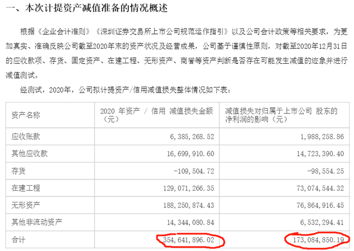 2020年的年报中披露,公司资产减值计提金额为3.55亿元,对利润的影响金额为1.73亿元。额度较大的是其他应收款、在建工程和无形资产。