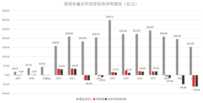 保利协鑫近10年来的营收规模均超百亿,但是公司的盈利能力却非常弱。保利协鑫从2007年上市以来,累计的净利润达40.42亿元,扣非归母净利润则是亏损38.65亿元,也就是说,保利协鑫从来没有正经给股东赚过一块钱,反而是大亏。