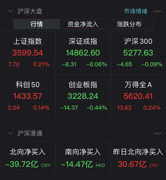 两市合计成交9492亿元,北向资金净流出39.72亿元。