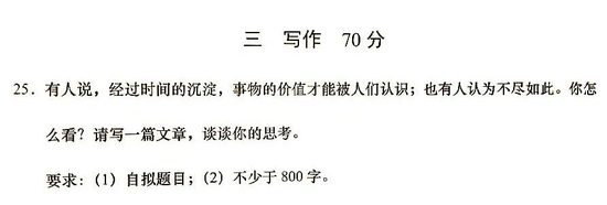 题目是:“有人说,经过时间的沉淀,事物的价值才能被人们认识;也有人认为不仅如此。请写一篇文章,谈谈自己的思考。”