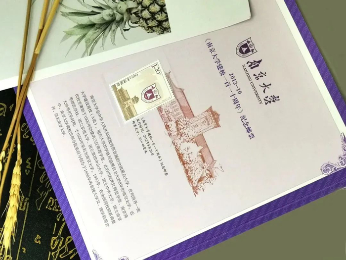 《南京大学建校一百一十周年》纪念邮票,一套一枚,面值120分。