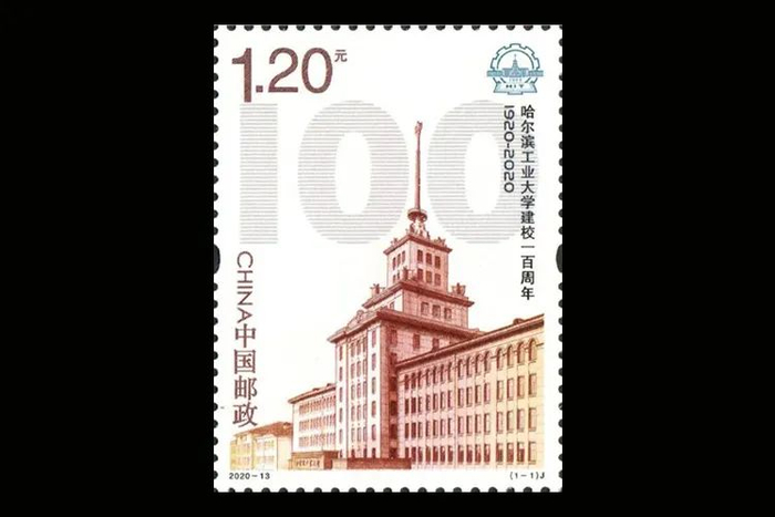 《哈尔滨工业大学建校一百周年》纪念邮票,一套一枚,面值120分。