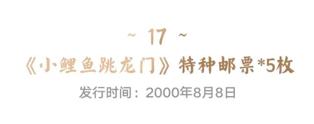 现在,这套珍藏册还附赠《小鲤鱼跳龙门》特种邮票,于 2000年8月8日发行,一套5枚,发行时间特别吉利,更加寓意着金榜题名的美好愿望。