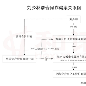 公开资料显示,海南大禾前身为宁夏华锦资产管理有限公司(以下简称宁夏华锦),曾是华锦资产全资子公司。2019年11月,华锦资产将其持有的100%宁夏华锦股权转让予大禾实业,转让价总计5.07亿元,随后宁夏华锦更名海南大禾。此后,大禾实业便间接实际控制了金力泰,实际控制人则由中国国防金融研究会变更为刘少林。
