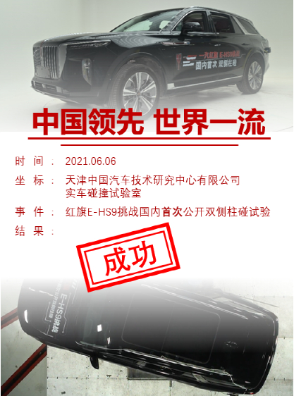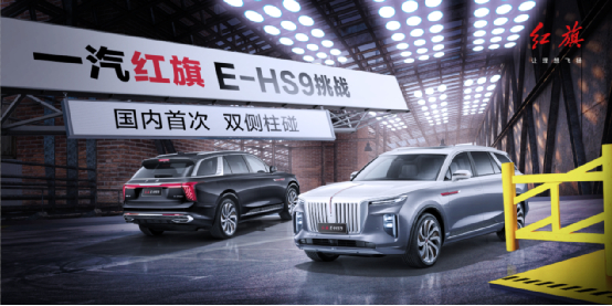 国内首次!红旗E-HS9成功挑战双侧柱碰公开试验