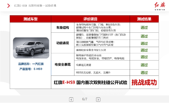 原标题:国内首次!红旗E-HS9成功挑战双侧柱碰公开试验 来源:研发总院