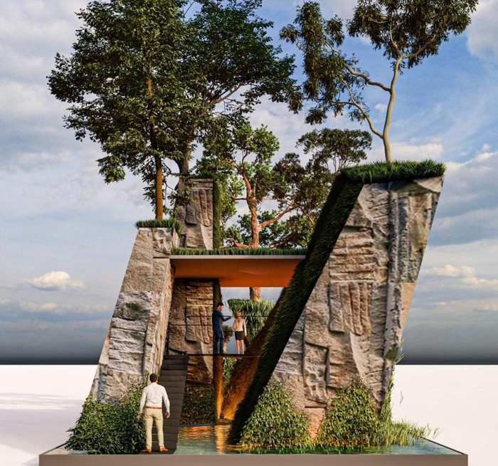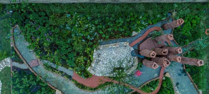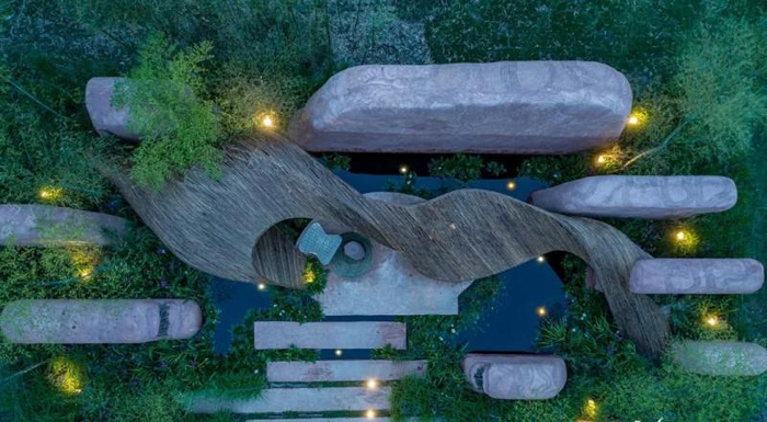 “岩石之上”是马来西亚设计师林映宗(Inch Lim)的作品,他曾多次斩获新加坡、美国、日本、中国等花园设计奖项,包括4个最佳设计奖及观众票选奖,认为在设计中“一定要敞开心扉,不要给自己设限”。“岩石之上”,就是一件让想象力天马行空之后的作品——与其说它是一个园艺作品,不如说是一座被绿色植物“占领”的建筑物,令人震撼。