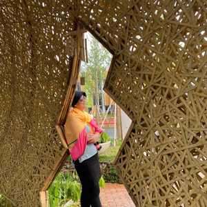 在leon kluge的理解中,平衡意为自然与人文可以和谐共生。园内有一种奔腾、原始和热烈的生命力,10个具有冲击力的土墙与1个流线型的藤编架子组成了花园的空间构架。赵世英告诉记者,土墙上的非洲特有纹饰,均由中国美院的雕刻师一笔一笔刻制而成,表达了非洲的热情好客。“leon kluge本人并不是一个纯园艺设计师,更像是一个艺术家,擅长绘画和雕塑。在施工时,我们请来了中国美院的专家,和leon kluge一起完成土墙表面肌理的处理。尤其是土墙上布置的一些枯枝,让原本略显呆板的土墙一下子灵动了起来,这个主意就是国内外双方艺术家讨论之后临时给展园加上的小创意。”