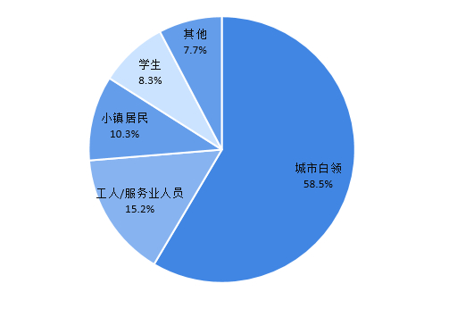 从职业角度来看,城市白领买走了58.5%的桌面适用商品,为桌面商品的主要需求人群。其次,工人及服务业人员购买的桌面商品数量占比达15.2%,小镇居民占比达10.3%,学生群体占比达8.3%。
