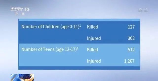 据美国“枪支暴力档案”网站数据,2021年以来,全美涉枪事件已导致127名12岁以下儿童死亡,512名12至17岁的青少年死亡