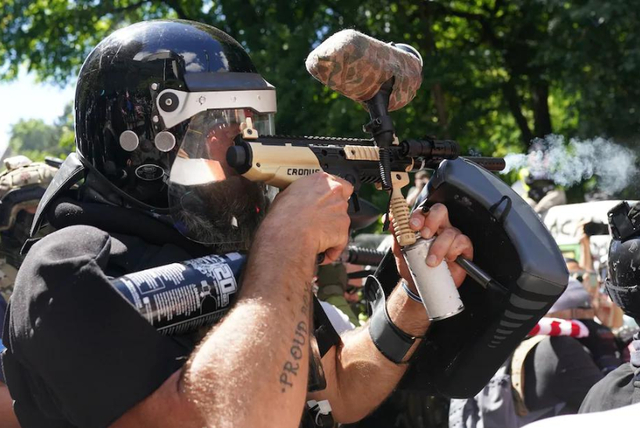 2020年8月,美国波特兰暴力冲突事件中,冲突双方使用彩弹枪作为武器相互攻击