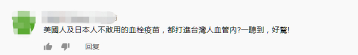 对此,有网友说,“美国人及日本人不敢用的血栓疫苗,都打进台湾人血管内?一听到,好害怕。”