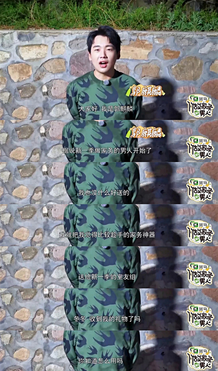 上一季室友组的嘉宾“饭锅兄弟”范丞丞、郭麒麟,在家务之旅中拔草了各种各样的家务神器,有“翻车”的,也有真切解决了家务难题的。探班会上,郭麒麟为本季的室友组送上了VCR祝福,还隔空投递了他精心挑选的神器大礼包。看到蛋清分离器、嗑瓜子专用碗、切西瓜神器、拖地拖鞋等实用道具,众人不禁为优秀毕业生郭麒麟点上大大的赞。