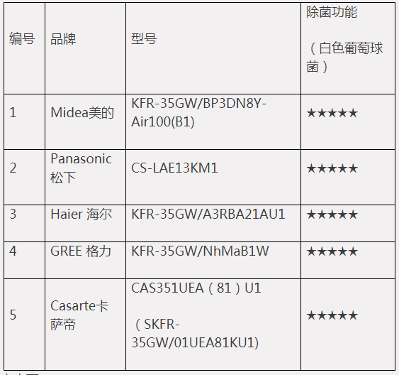 去除室内空气中的细菌,是不少空调产品的卖点,也是消费者的关注点。比较试验对5款宣称具有除菌功能的样机进行除菌率测试。检测结果除菌率最高为99.6%,最低为98.3%,除菌效果令人满意。
