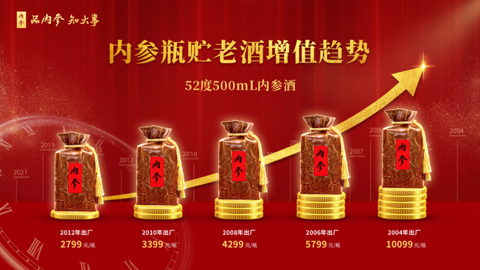 酒业家注意到,今年,2004年出厂的内参酒零售指导价10099元/瓶,是当下内参酒市场价格的6.74倍,而在2019年,2004年出厂的内参酒零售指导价4999元/瓶,短短两年时间价格上涨5100元/瓶。这便是时间赋予老酒的价值。