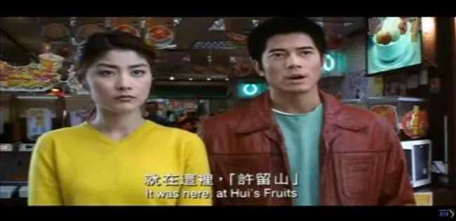 电影《小亲亲》里,陈慧琳郭富城在许留山门口约会。