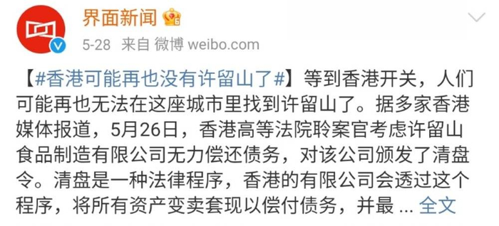 “上海所有许留山都撤店了”、“香港许留山被颁清盘令”……