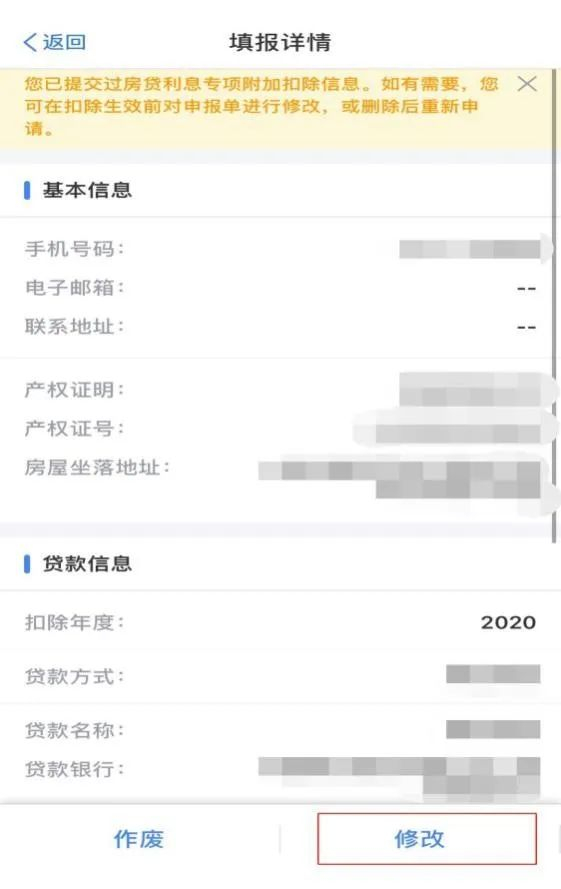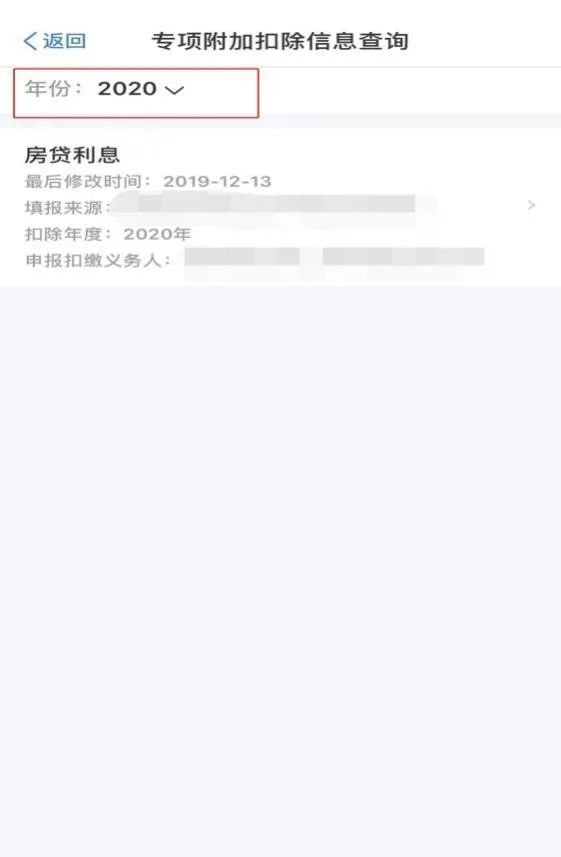选择年份并找到已经填写的专项附加扣除信息
