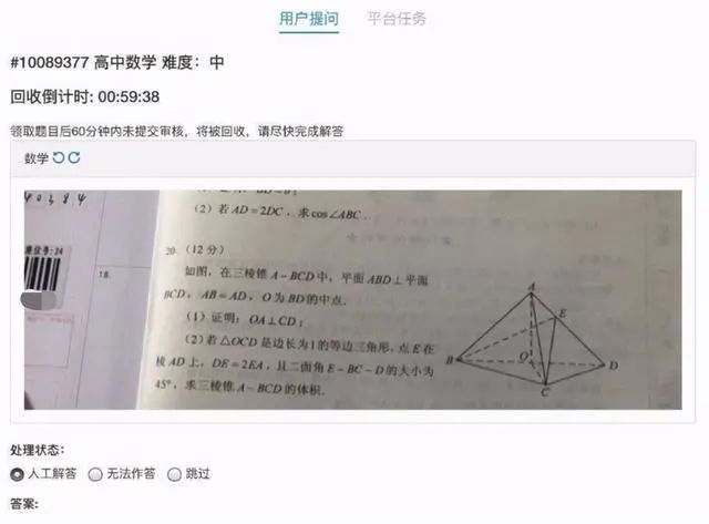 7日下午,网传有考生将2021全国新高考一卷数学卷一道立体几何题拍照上传至小猿搜题App。