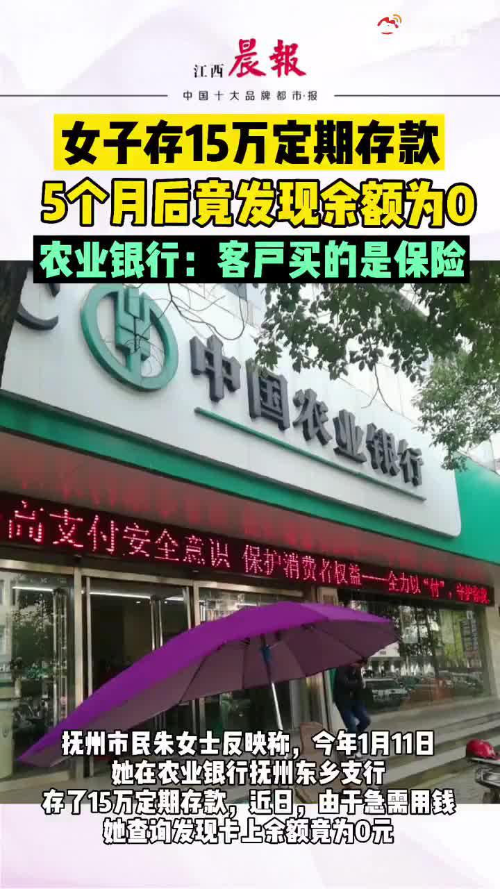 原标题:女子存15万定期存款,半年后余额为0!农业银行:客户买的是保险