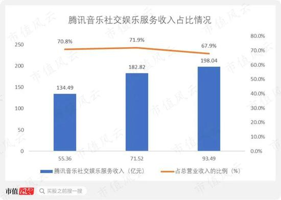 收入结构方面,腾讯音乐的社交娱乐服务收入占总营业收入的比例达到70%左右。