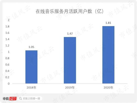 公司在线音乐服务的月付费用户数从2018年的420万增长至2020年的1596万,年复合增速高达95%。