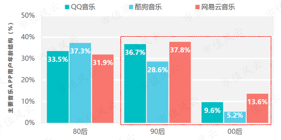 Fastdata的《2020年中国在线音乐行业报告》显示,网易云音乐APP的90后用户占比和00后用户占比,均高于QQ音乐APP和酷狗音乐APP,90后和00后用户合计占网易云音乐APP用户的比例达到51.4%。