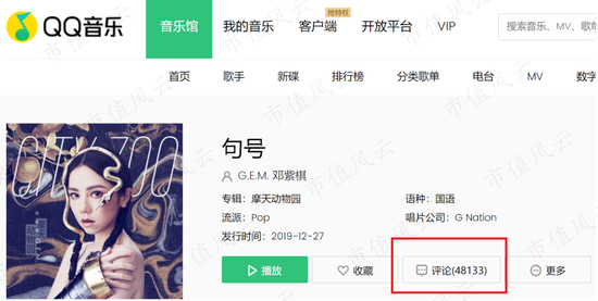 邓紫棋算是目前整个华语乐坛里的Top级歌手了,理论上,她的歌曲在各大在线音乐平台上应该有很多用户去评论才对。