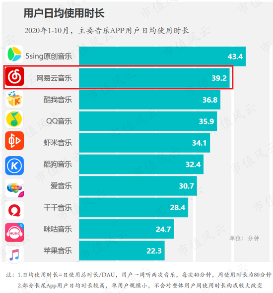 根据Fastdata的《2020年中国在线音乐行业报告》,2020年1-10月,腾讯音乐旗下的三款音乐APP的用户日均使用时长,均低于网易云音乐APP的用户日均使用时长。