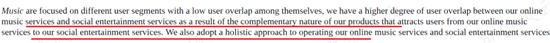 公司的变现模式主要有两种:在线音乐服务,社交娱乐服务。