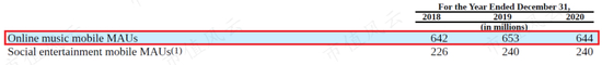 要知道,2020年网易云音乐的在线音乐服务的MAU为1.81亿,而根据腾讯音乐2020年年报,腾讯音乐旗下的音乐APP,其MAU就达到6.44亿,后者几乎是前者的3.6倍。