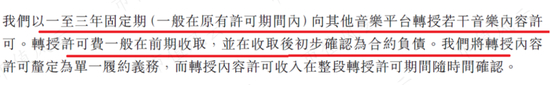 第三是平台上的数字专辑及单曲的销售,第四是转授权,即公司将所获授权的音乐内容再转授予其他的在线音乐平台。
