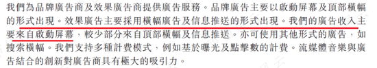 第二是广告服务,公司为品牌广告商和效果广告商提供广告服务。