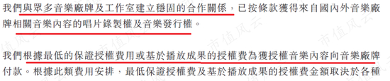 音乐厂牌对所授权的音乐内容有两种收费模式,一种是最低的保证授权费,一种是基于播放效果的授权费,公司通常会在授权有效期内,分期支付授权费。