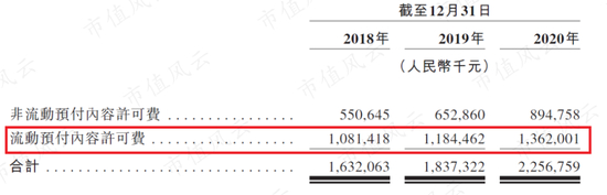 公司资产项里最重要的一项科目当属预付内容许可费。