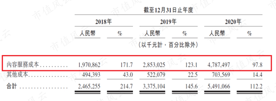 占营业成本大头的是内容服务成本,而内容服务成本主要包括向音乐厂牌和独立音乐人支付的内容授权费,以及向主播和直播公会支付的收入分成费。