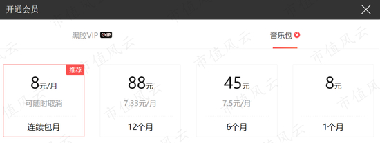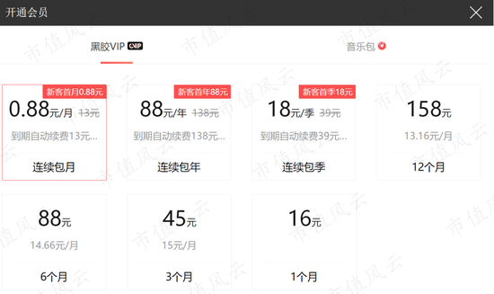 除了购买基本音乐包,用户还可以成为公司的黑胶会员,定价模式分为无固定期限的自动续费模式和有固定期限的模式。