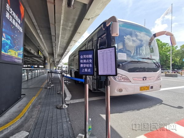 珠海机场于6月8日及9日开通免费核酸检测接驳快线班车。旅客可在珠海机场候机楼一楼的士车道外侧的免费穿梭车辆乘车点,乘坐穿梭车前往前往珠海金湾区核酸检测点(广东省人民医院珠海医院)进行核酸检测。接驳快线班车从早上8:30起,逢整点及半点发车。