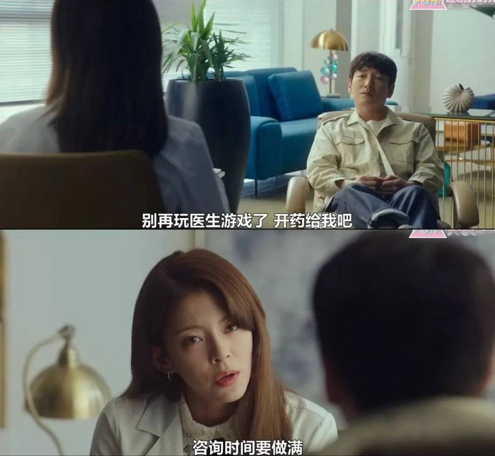 韩剧《西西弗斯》中也有这样的场景描绘,精神科医生书真是男主韩泰术的朋友,她不仅一直给男主做心理咨询,还被男主要求“给自己开点药”。