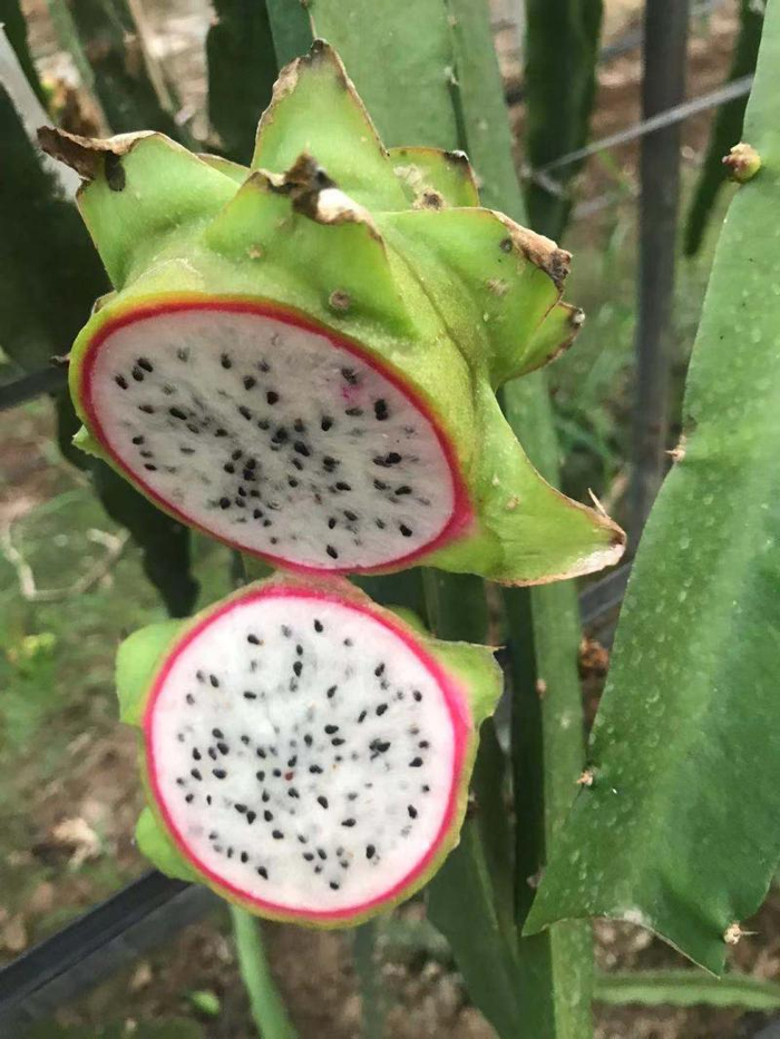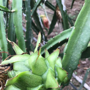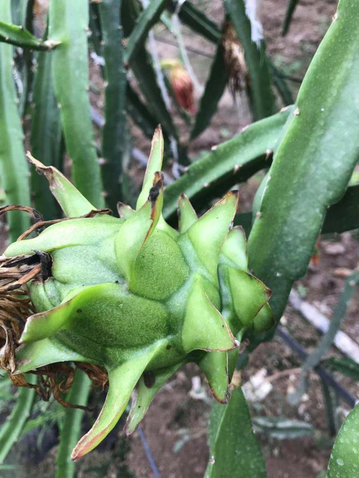 种植“绿龙果”需采用嫁接的方式,要购买20多厘米长的“绿龙果”枝条后嫁接在其他品种的火龙果上。这种枝条价格不菲,每根要80元。樊尧花了2000多元买来20多根“绿龙果”枝条后,开始试种。“去年就有极少量的‘绿龙果’成熟了,今年的产量显著高于去年,但也不多,大约可有百斤。今年果子成熟后,我们会自己育苗进行扦插,预计明年可有千斤产量,实现规模化种植后即可推向市场。”