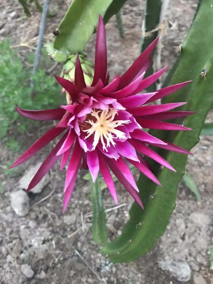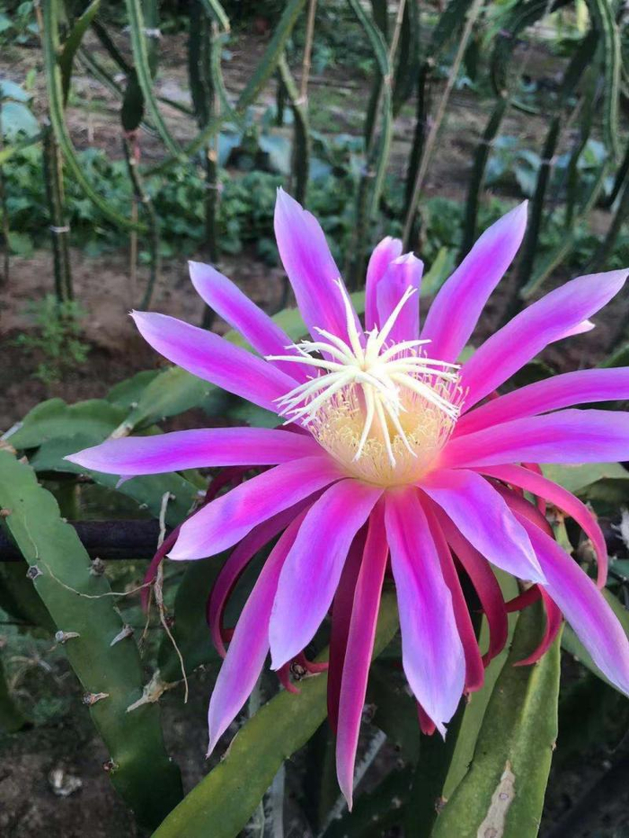 火龙果花不仅美丽,还可以食用,且有保健功效。“火龙果全花都可以生食或加工后食用,生食清脆润滑,炒熟后香甜清脆,还能涮火锅吃。未来,期待‘绿龙果’的果实和花卉都能产生经济效益。”樊尧说。