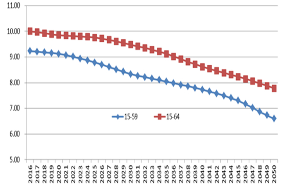 图5 我国劳动年龄人口的变化(单位:亿)