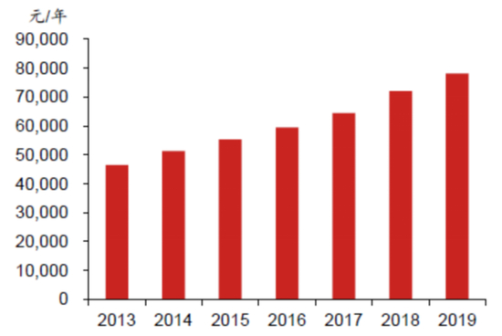 智能化转型是人口红利减少后经济转型的必然方向,让机器人代替人做更多的事情,是老龄化社会的必然选择。因为人力成本逐渐上升,中国制造业的竞争优势近年来出现了下滑。根据日本贸易振兴机构( JETRO)的数据,2018年中国劳动者的收入已明显高于亚太区的周边邻国 。近年来国内制造业平均工资迅速上升 ,已经从2014年的51369元/年上升至 2019年的 78147元/年,CAGR8.7%。 若国内人工成本根据此趋势进一步提升,中国制造业必须寻求其他方式来维持其竞争力,主要方式有两种:1)通过使用更多的自动化制造设备来降低整体生产成本; 2)将产品定位进一步提高至高端产品,使得产品更精密、定制化程度更高。不论企业采取哪种方式,更高效、更精密的工业自动化设备都必不可少。