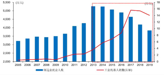 图33 制造业就业人数&工业机器人销量